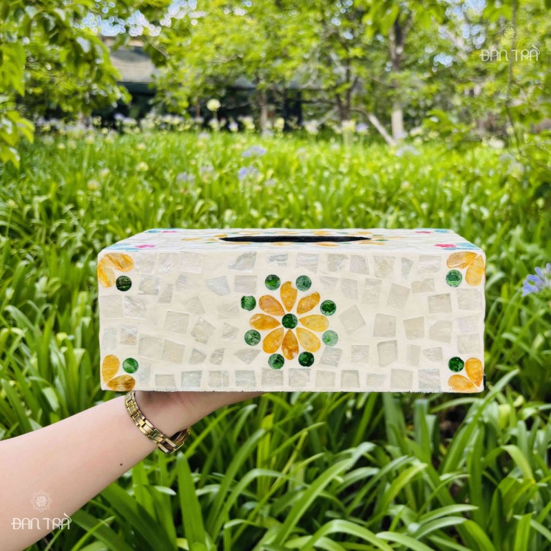 Không chỉ là một vật dụng tiện ích, hộp khăn giấy khảm trai còn là điểm nhấn thẩm mỹ cho không gian. Dù đặt ở phòng khách, phòng ngủ hay quán cà phê, nó đều góp phần làm đẹp không gian sống theo cách nhẹ nhàng mà nổi bật.